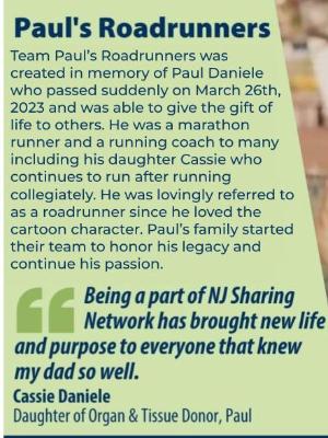 Please join our team on Sunday, June 7 in New Providence or make a contribution to a team member as we honor and remember Paul Daniele and all the others who gave, pay tribute to those who received, offer hope to those who continue to wait, and remember the lives lost while waiting for the gift of life.